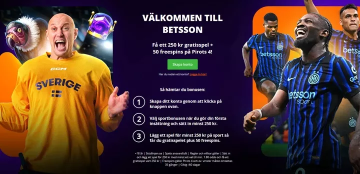 Betsson odds bonus är ett mycket förmånligt erbjudande till alla nya spelare med ett Freebet värt 250 kr. Gör en insättning på 250 kr och lägg ett första spel värt 250 kr med minsta odds 1,80 för att få ditt free bet. Dessutom 50 free spins på Pirots 4